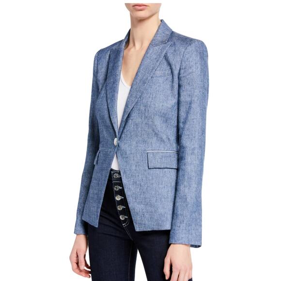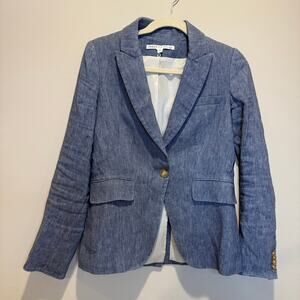Veronica Beard Dickey Cutaway Jacket Lined Blue Linen Size 2