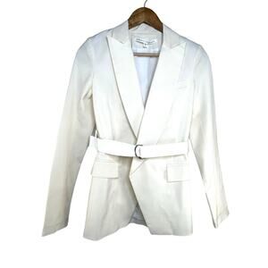 Veronica Beard Dickey Jacket Blazer Size 0 Ivory Cream "Palm Peak" Belted