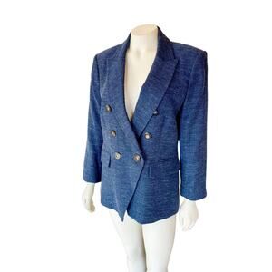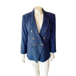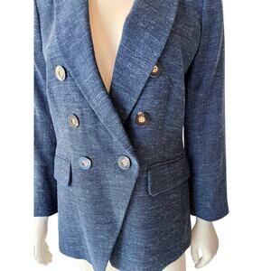 Veronica Beard Dickey Jacket Herringbone Empire Navy Blazer DoubleBreasted Sz 8
