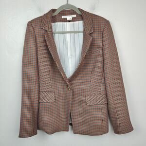 Veronica Beard Dickey Jacket Womens 8 Upcollar Plaid Brown Red Preppy Blazer