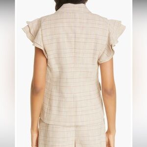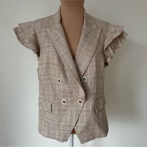 Veronica Beard Double Breasted Janae Khaki Plaid Flutter-Sleeve Vest NWT Size 12