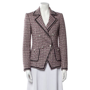 Veronica Beard Double Breasted Theron Tweed Blazer Jacket Plaid Purple Pink SZ 8