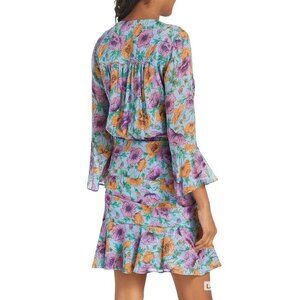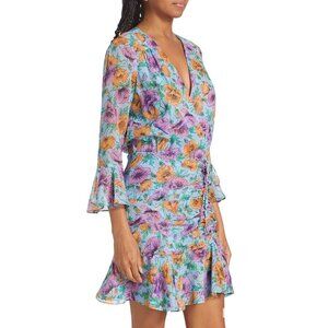 Veronica Beard Dress Sean Floral Printed Ruched Mini 100% Silk Size 4