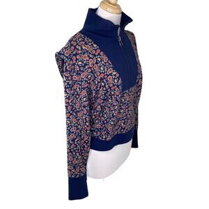 Veronica Beard Dylan Floral Half Zip Pima Cotton Sweatshirt In Navy Multi Floral