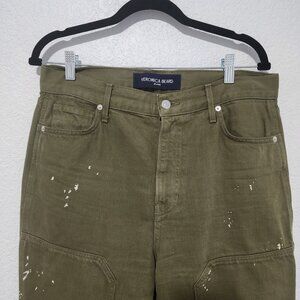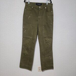 Veronica Beard Dylan High-Rise Splattered Paint Straight Jeans Size 30 Sage