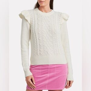 Veronica Beard | Earl Ruffled Cable Knit Sweater (S)