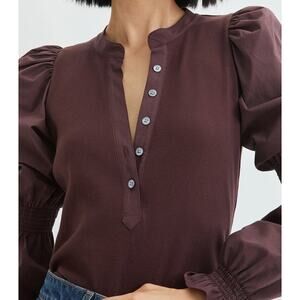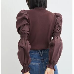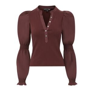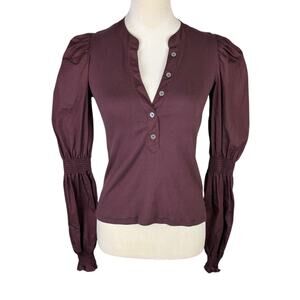 Veronica Beard Effy Maroon Purple Long Puff Smocked Sleeve V-neck Ribbed Top