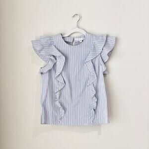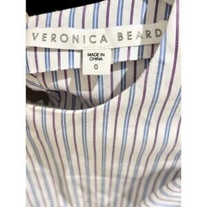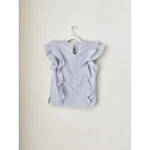 Veronica Beard Emert Striped Flutter Sleeve Ruffle Trim Blouse Top Blue/White 0