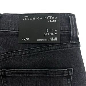 New with tags Veronica Beard Emma Skinny Mid-rise Jeans Washed Onyx Black Raw Hem stretch women's size 29