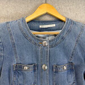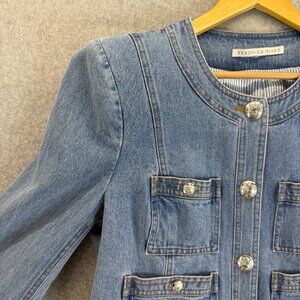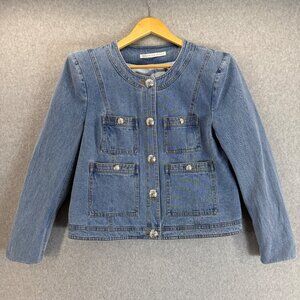 Veronica Beard Ferazia Denim Jean Jacket 4 Pocket Silver Buttons Size Large (?)