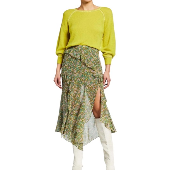 Veronica Beard Fern Paisley Eleonora Ruffle Midi Skir Size 2