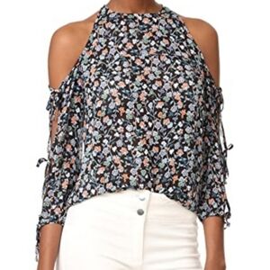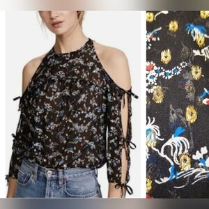 Veronica Beard Flynn Cold-Shoulder Floral Metalic Print Silk Blouse Size 2