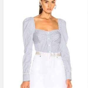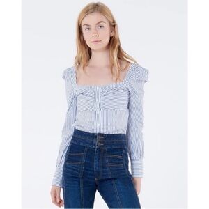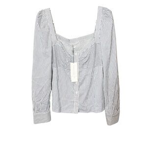 Veronica Beard Frankie Pinstripe Button Down Square Neck Top