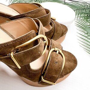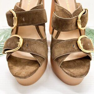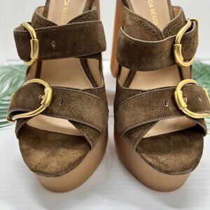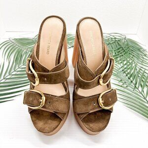 Veronica Beard Garrick Brown Suede Dual Buckle Platform Sandals Size 6.5M NWB