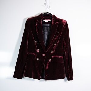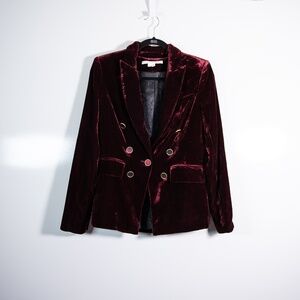 Veronica Beard Gaya Dickey Crushed Velvet Velour Double Breasted Jacket Merlot 2