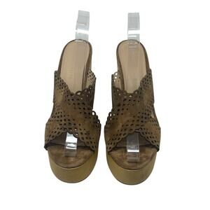 Veronica Beard Gaynor Clog Sandals Suede Scalloped Hazelwood Brown Size 10