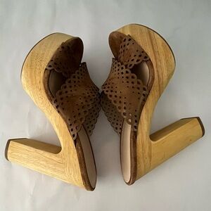 Tags: Retro 70’s chic boho bohemian hippie platform slip on mule sandal neutral leather suede wood