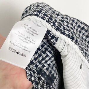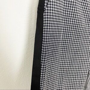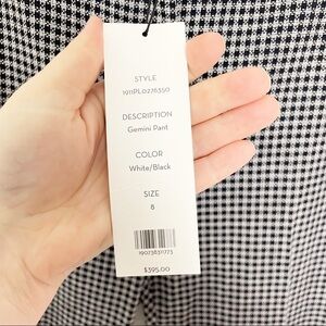 Zip fly with hook and button closure, straight leg, side grosgrain stripe, white/black. Cotton, Dry clean only. Casual, work, business casual, professional, dressy.