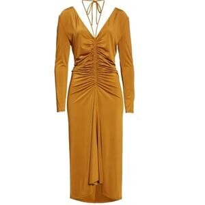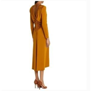 Veronica Beard Gilbert Midi Dress 8 NWOT Mustard Yellow Long Sleeve Ruch Glam