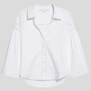 Veronica Beard Glenda Stretch Cotton Button Down Shirt 6 Puff Balloon Sleeve