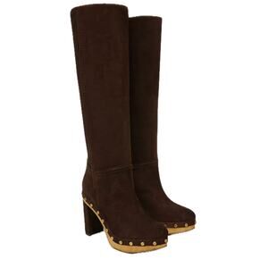 Veronica Beard Glendale Block heel Clog Knee Boots Brown 8