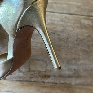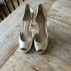 Veronica Beard Godot Gold Metallic Peep Toe Heels size 7.5