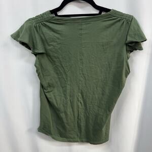 Veronica Beard Green Julianka Flutter Sleeve V-Neck 100% Pima Cotton Top Small