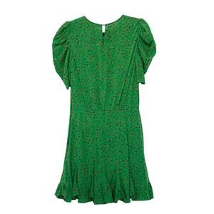 Green printed silk (91% Silk, 9% Elastane). Sheath. Short sleeves. Crew neckline. Hidden side zipper closure. Partially lined. 35" from shoulder to hemline. Imported.