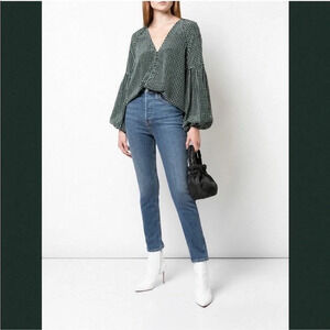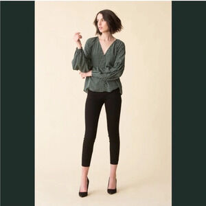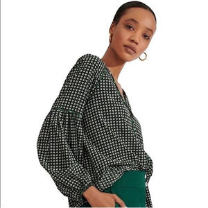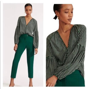 Veronica Beard Green Silk Valentin Blouse 2 Balloon Sleeve