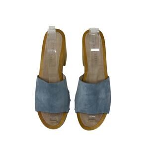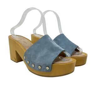 Veronica Beard Hannalee Suede Clog Sandals Heels Slide Wooden Blue Size 10