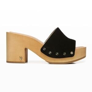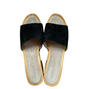 Veronica Beard Hannalee Suede/Wood Clog Platform Sandal Black 9