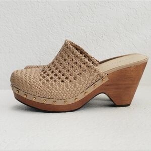 Veronica Beard Hardie Latticd Clogs in Sand and Brown NWT