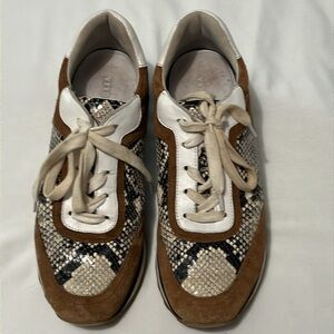 Veronica Beard Hartley Walnut Suede & Python Print Sneakers