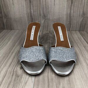 Veronica Beard Heel Sandals Womens EU 37 Nev Silver Glitter Slip On Shoes