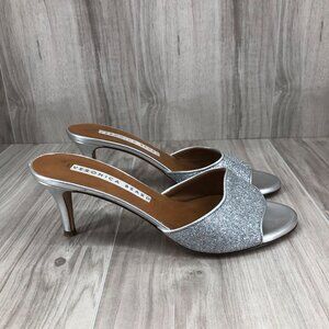 Veronica Beard Nev Silver Glitter Heeled Sandals Women's Size EU 37