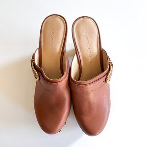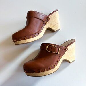Veronica Beard Hendrix Hazelwood Brown Leather Studded High Heel Clogs 8.5