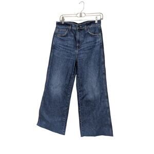 Veronica Beard High Rise Wide Leg Crop Frayed Jeans Dark Wash Size 29