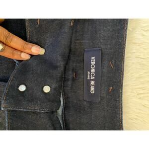 These are the sexist pair of jeans you will ever own. Beautiful brand these new Veronica Beard denim jeans with a high waistband comes with a removable fabric denim belt. The button detail on the waistband and on the side pockets is very unique and amazing.