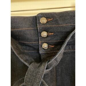 These are the sexist pair of jeans you will ever own. Beautiful brand these new Veronica Beard denim jeans with a high waistband comes with a removable fabric denim belt. The button detail on the waistband and on the side pockets is very unique and amazing.