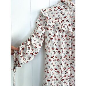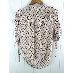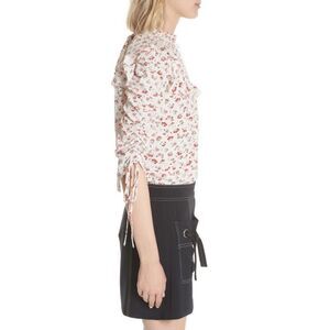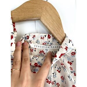 Veronica Beard Howell Floral-print Silk Ruffle Top In White Blouse 4 $395
