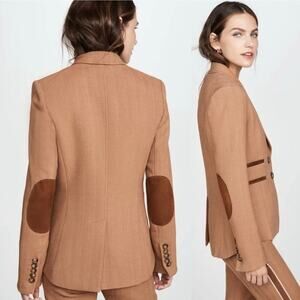 Veronica Beard Hudson Dickey Jacket Tan Camel Herringbone Blazer Preppy Elbow Patch Size 6. Great overall, pre-owned condition.