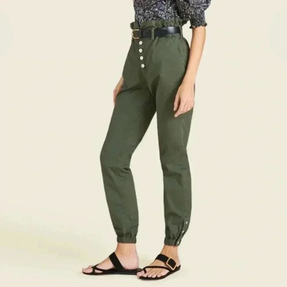 “Giving an upgrade to your favorite joggers, the Tedi paperbag pants are slightly cropped in their New Army Green wash.