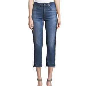 Veronica Beard Ines Cropped Straight-Leg Girlfriend Jeans 28 Blue Rhinestones