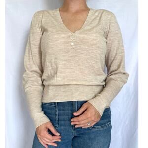 Veronica Beard Inez Stretch Merino Deep V Henley Sweater, Oatmeal, Large