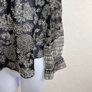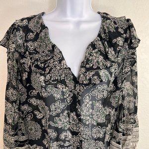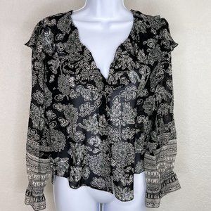 Veronica Beard Itha Ruffle Silk Blouse 100% Silk, 4, Black cream green