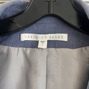 Stunning Blue Linen Veronica Beard Blazer. Leather lining under lapel. Size 2 (fits closer to size 4).