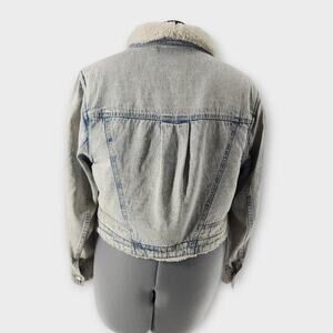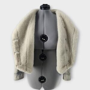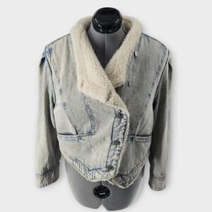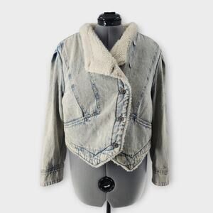 Veronica Beard Jacket Women's XL Acid Wash Neena Denim Sherpa Lined W/ Pockets