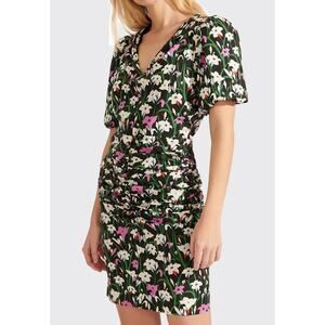 Veronica Beard Janis Floral Puff Sleeve V-Neck Dress Size 14