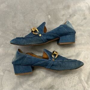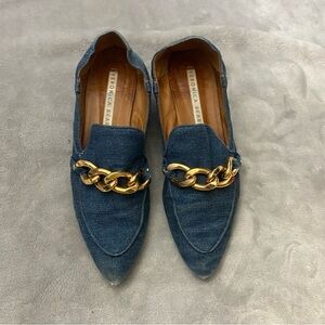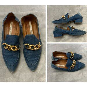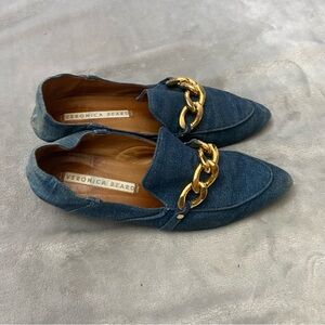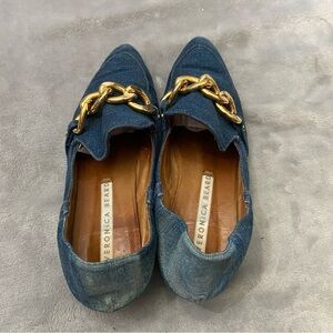 Veronica Beard Jaxon Blue Chambray Pointed Toe Step On Mules Size 38.5