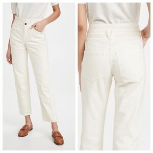 Veronica Beard Jean Blake Straight Notch Ankle Jeans Structured Ecru Cream 30